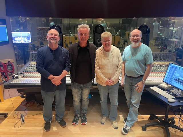 Arranger/orchestrator/conductor, RJ Miller, 2-time Grammy Award-winning pianist, Peter Kater, 7-time Grammy Award-winning recording engineer, Leslie Ann Jones & recording engineer, Dann Thompson during recording sessions at Skywalker Sound Studios at Skywalker Ranch. This foursome represents a combined 26 Grammy Award nominations.